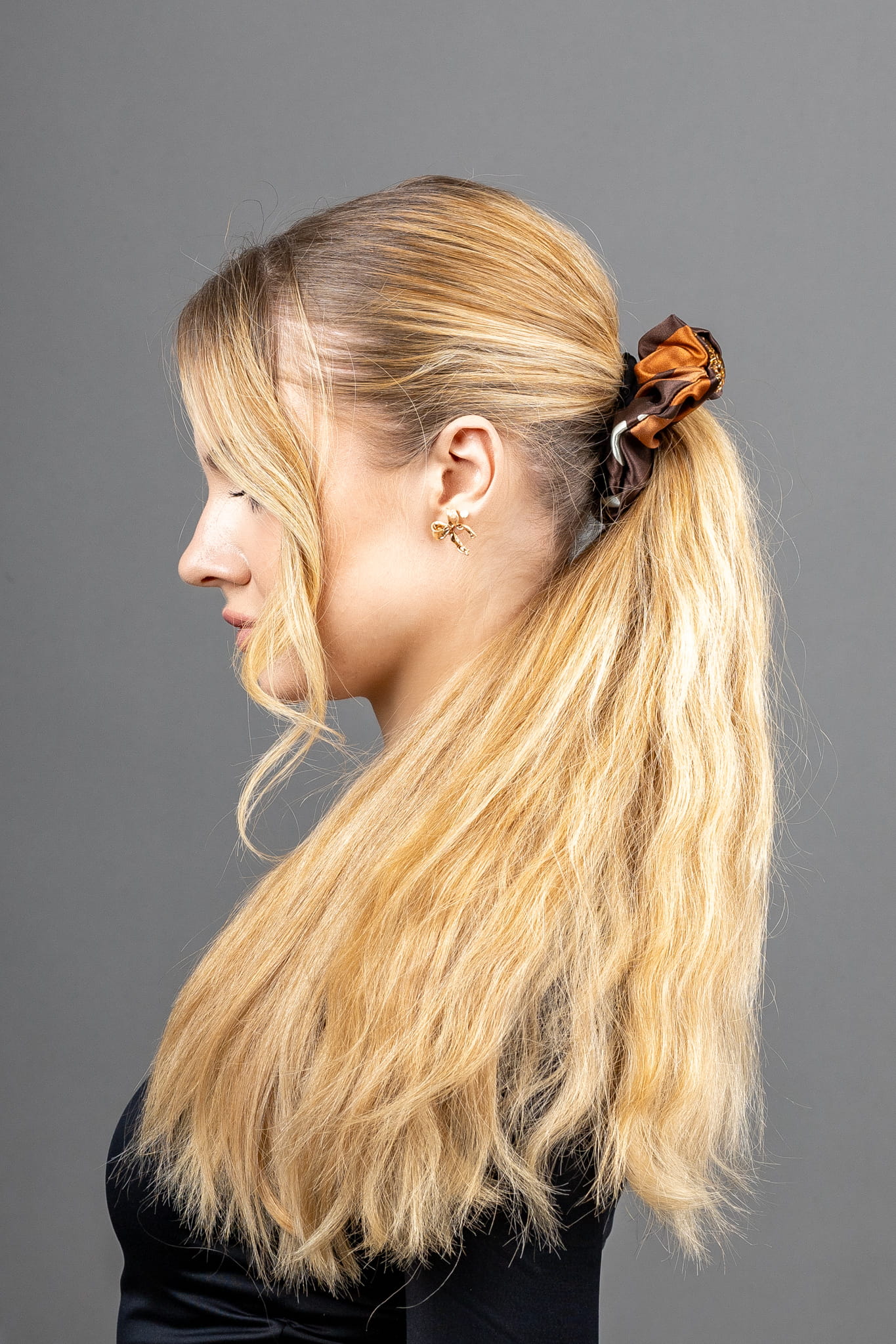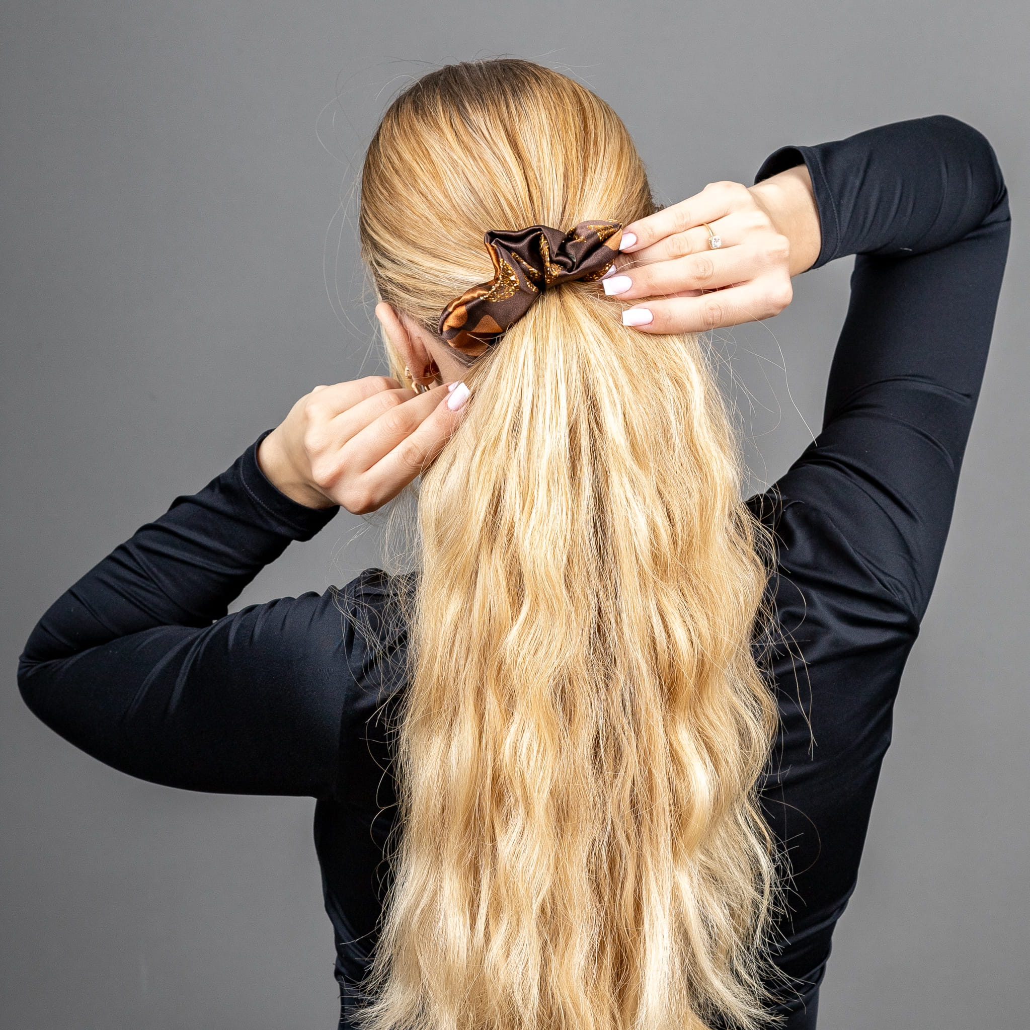 Wykonana z delikatnego, satynowego jedwabiu, gumka nie tylko pięknie się prezentuje, ale też pielęgnuje włosy: nie wyrywa, nie odgniata, nie powoduje elektryzowania. To detal, który dodaje harmonii Twojemu codziennemu rytmowi.