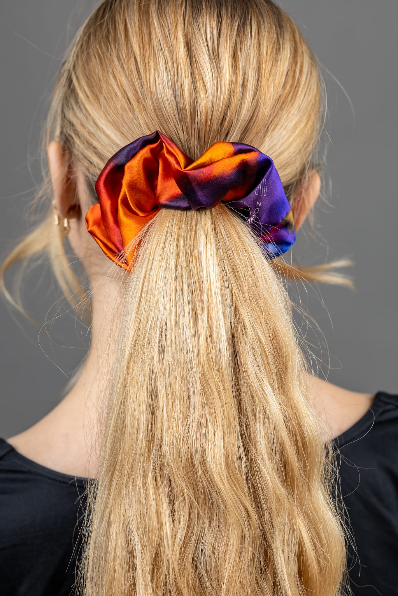 Pozwól sobie na odrobinę poetyckiego luksusu, zamkniętego w wspaniałej formie jedwabnej gumki. Zorza Polnych Maków to coś więcej niż dodatek – to opowieść o letnim polu skąpanym w słońcu, gdzie czerwono-pomarańczowe maki tańczą na wietrze w towarzystwie błękitnych chabrów.